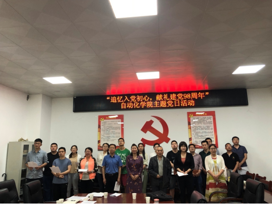 为纪念建党98周年,深入学习习近平新时代中国特色社会主义思想,6月20日下午,纪委书记宁焕侠参加自动化学院 “追忆入党初心,献礼建党98周年”主题党日活动并讲授党课《习近平新时代中国特色社会主义思想——关于“初心”和“使命”》。自动化学院党委书记刘国营、副院长屈军锁、党委副书记卢岩与教师党员参加活动。