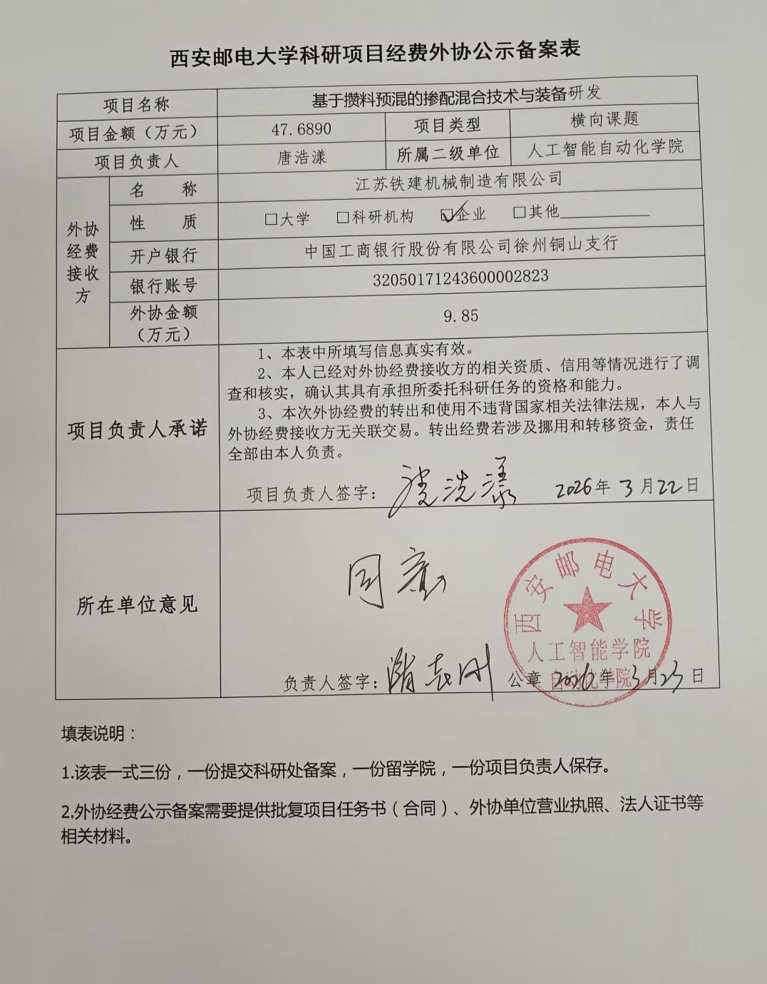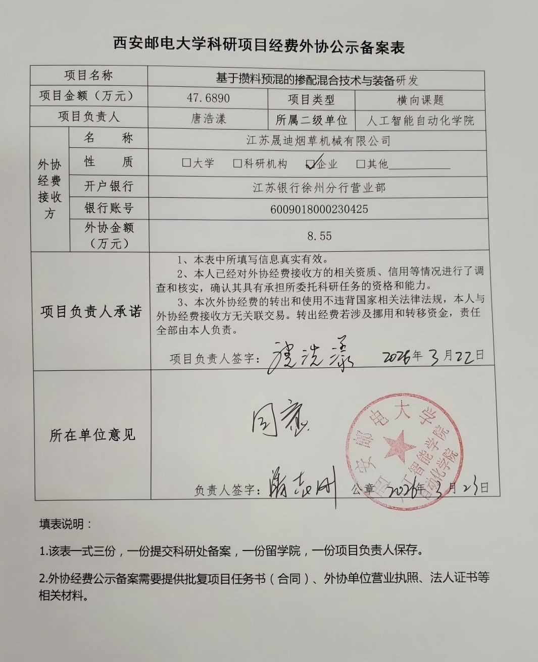 西安邮电大学科研项目经费外协公示