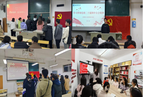 各党支部紧扣学习主题,聚焦全会核心要义,通过领学公报文件、解读“十五五”规划建议、观看发展成就视频等形式,结合专业特色,探讨科技自立自强与国家战略需求的结合点,同步开展心得分享、重温入党誓词、书写全会金句等环节,强化责任担当,进一步增强党员“四个意识”、坚定“四个自信”、做到“两个维护”。